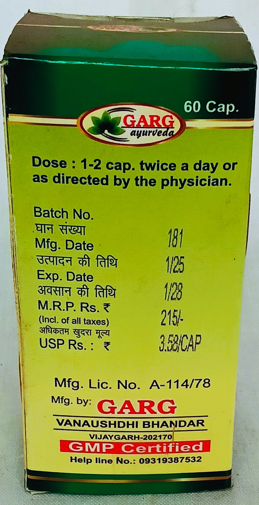 मात्रा एवं अनुपान : 1-2 कैपसूल सुबह-शाम जल के साथ।