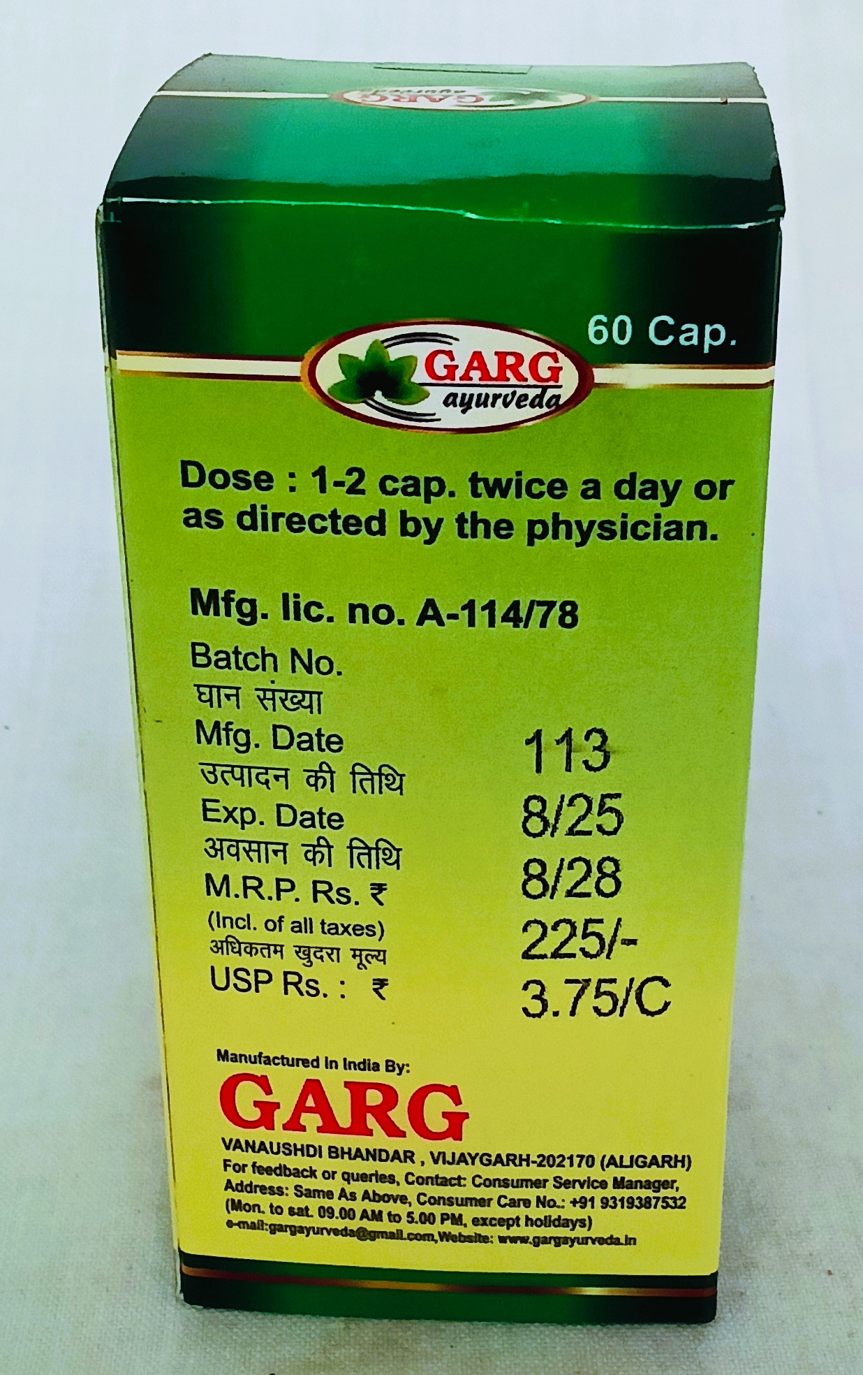 मात्रा तथा अनुपान – 1-2 कैपसूल सुबह-शाम जल या चिकित्सक के परामर्श से अन्य अनुपानों से दें।