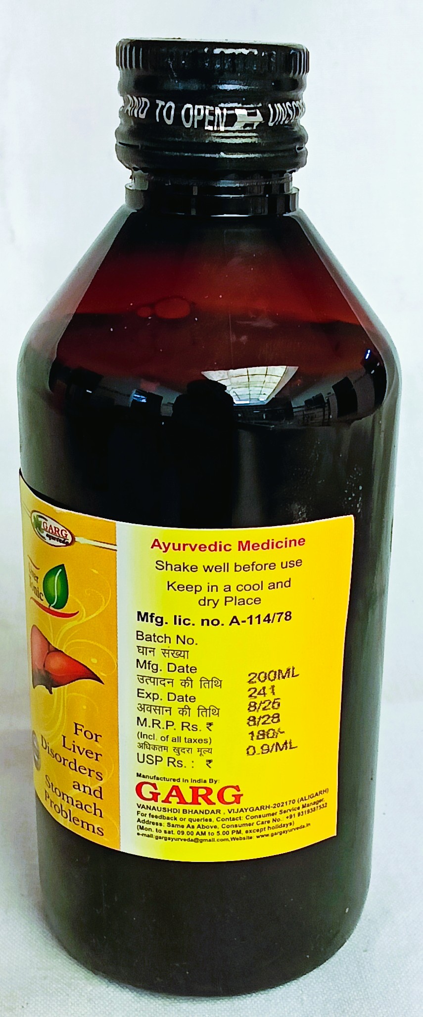घटक – 100 मिली. में घटकों की मात्रा- पुनर्नवा 10 ग्राम, कुटकी 10 ग्राम, भृंगराज 10 ग्राम, कालमेघ 10 ग्राम, रोहतक 10 ग्राम, कुमारी 10 ग्राम, विडंग 10 ग्राम, नागरमोंथा 10 ग्राम, हरड़ 10 ग्राम, गिलोय 10 ग्राम, आवश्यकतानुसार चीनी के शर्बत से निर्मित।