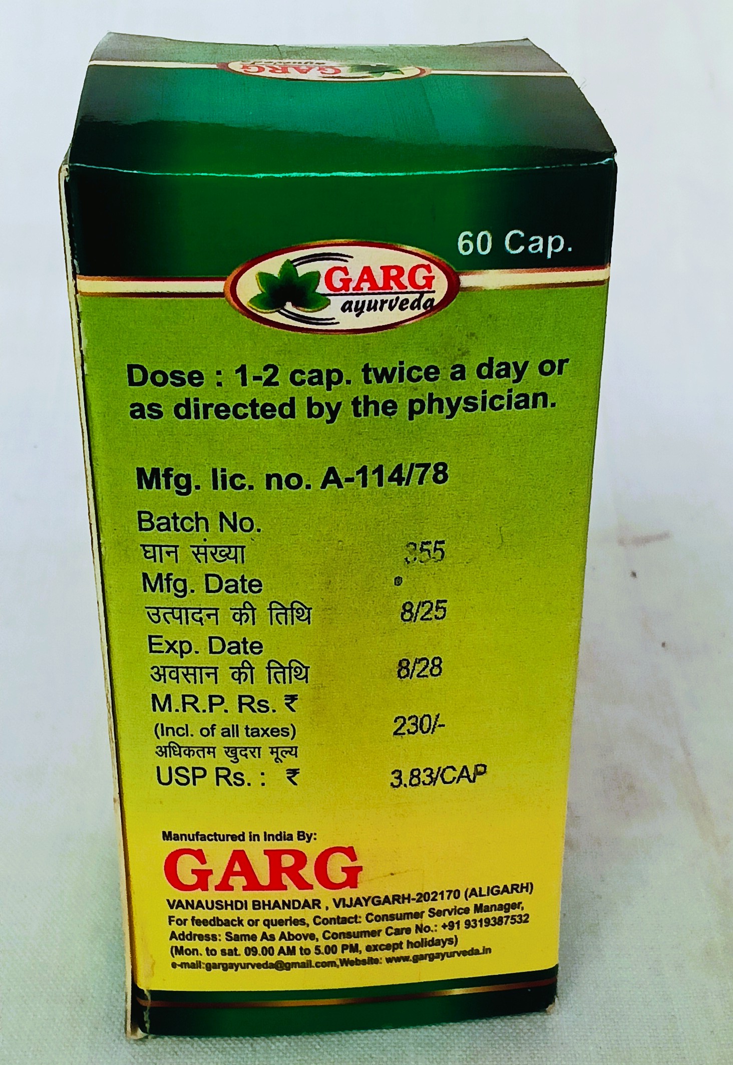घटक – 1 कैपसूल में घटकों की मात्रा – निम्ब पंचांग घनसत्व 600 मिग्रा.।