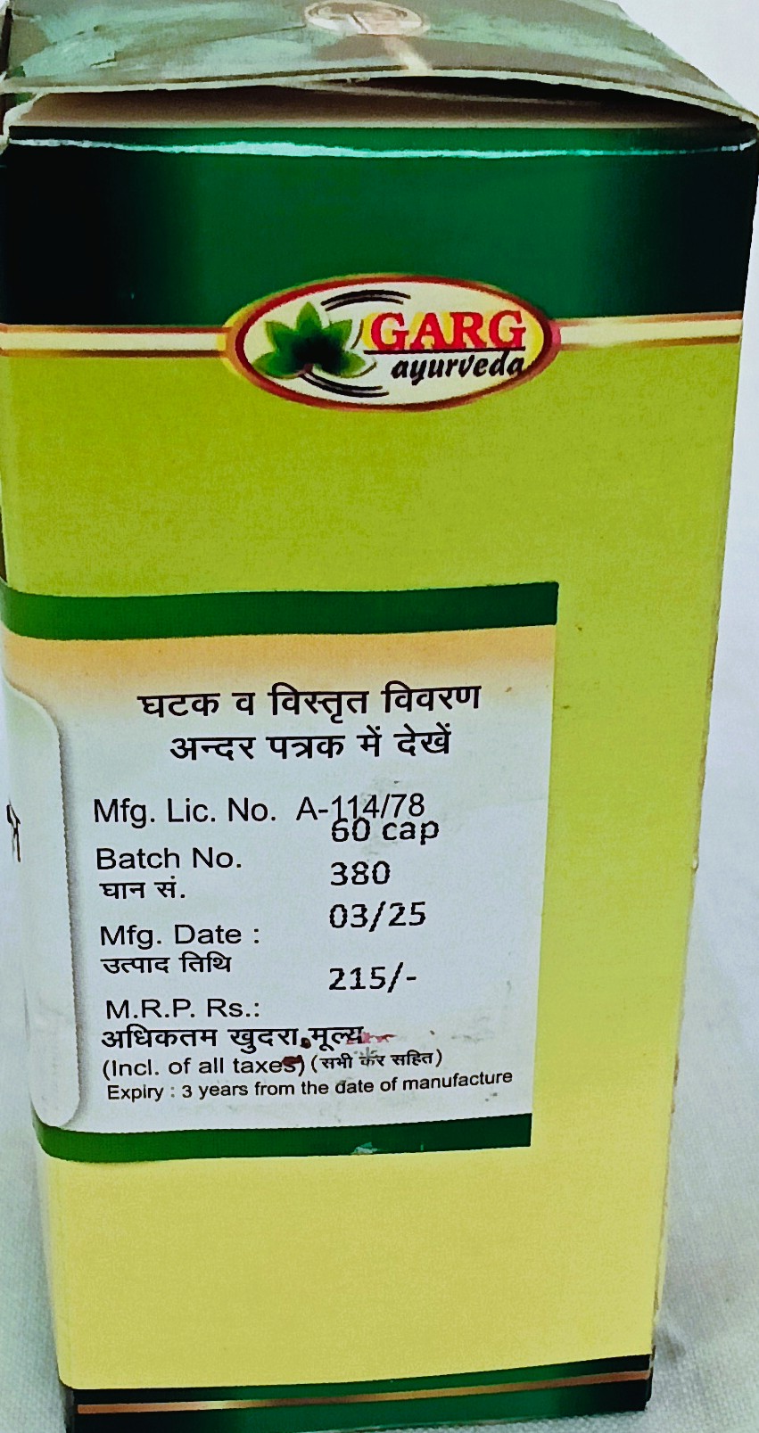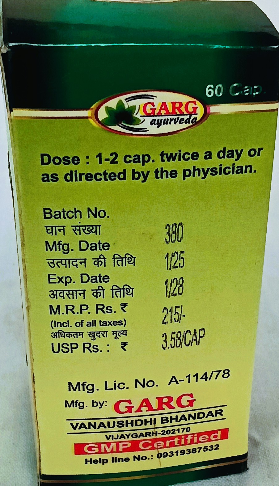 पैकिंग : 500 कैपसूल, 120 कैपसूल, 60 कैपसूल।