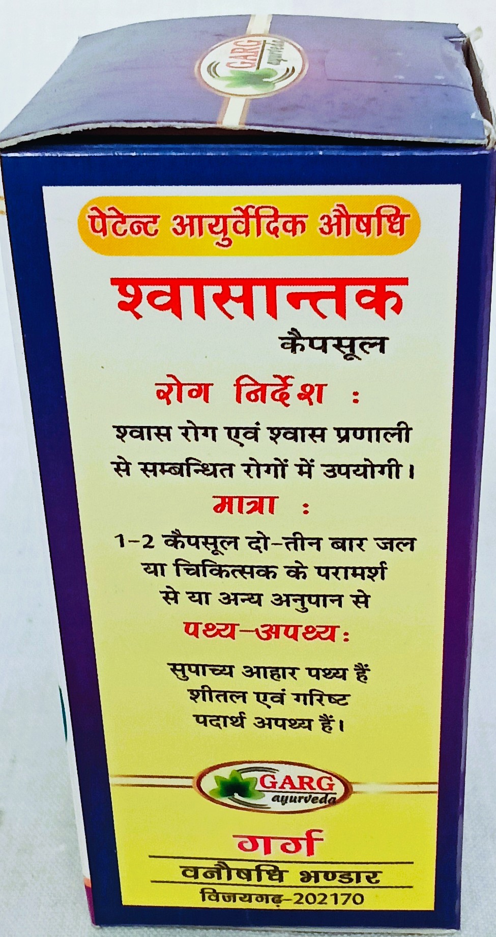 विशेष – श्वासान्तक कैपसूल के साथ यदि गर्ग निर्मित श्वास कासासव का भी प्रयोग कराया जावे तो विशेष लाभ होता है।
